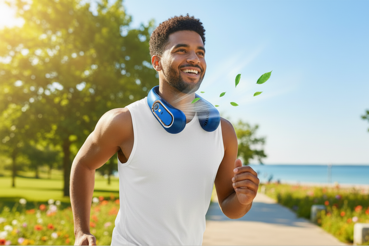 Powerful hands-free cooling fan built for hot days, workouts, and travel.